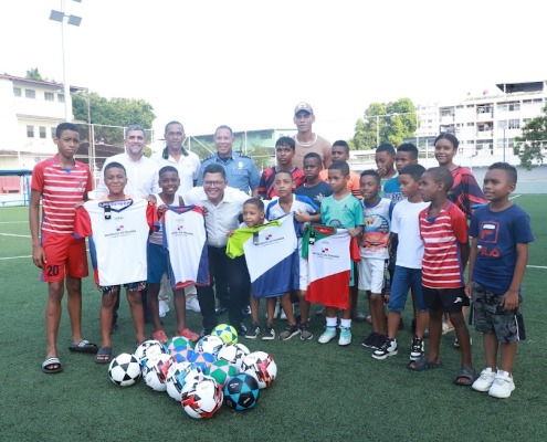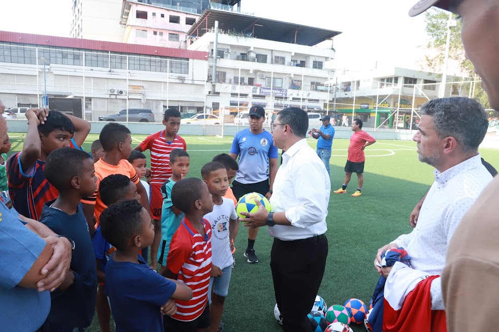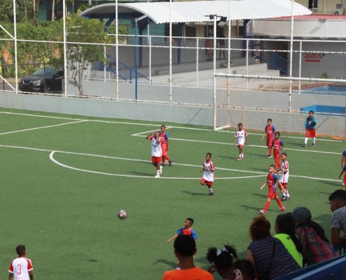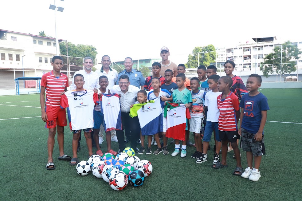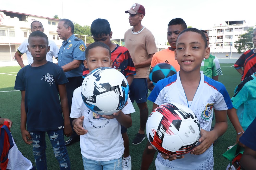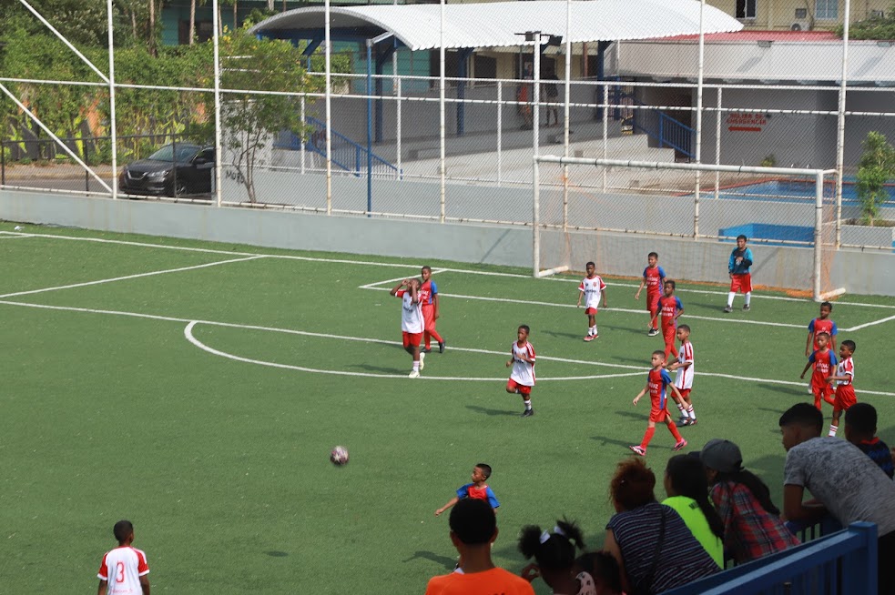 Panamá, 18 de abril de 2024. La histórica cancha de futbol de Plaza Amador, en el populoso barrio de Santa Ana, se convirtió en el escenario de un torneo de futbol de jóvenes como parte del programa que desarrolla la Fundación Plaza Amador en conjunto con la Dirección Nacional para la Prevención de la Delincuencia Juvenil (Dipred), dependencia del Ministerio de Gobierno.