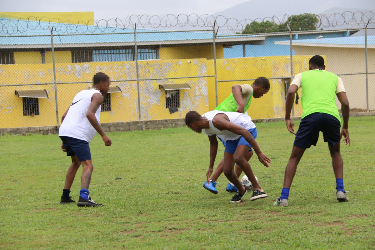 Panamá, 17 de agosto de 2023. – Kairós FC es el nombre con que se bautizó al equipo de fútbol conformado por 50 jóvenes del Centro de Cumplimiento de Las Garzas (CCLG) quienes participan de las jornadas de entrenamiento establecidas para vencer en los encuentros deportivos de índole amistoso que se viene realizando intramuros.