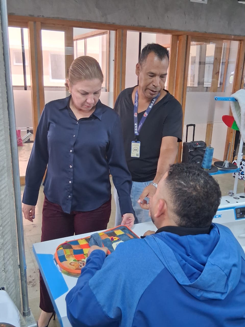 La apertura de esta labor, contó con la asistencia de la ministra de Gobierno, Dinoska Montalvo, quien pudo observar el trabajo que hacen los privados y como se elaboran estas mochilas.