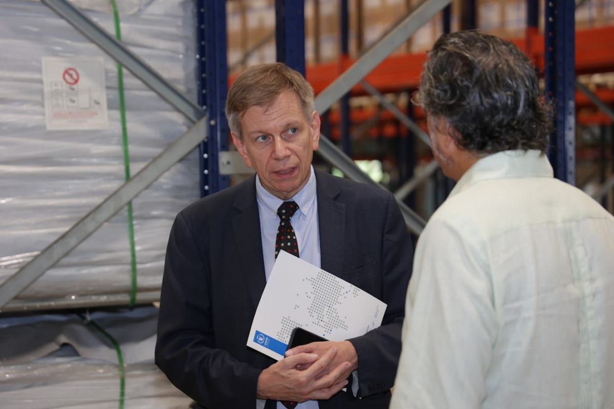 Durante el recorrido por las bodegas de los usuarios del denominado “Hub Humanitario”, el diplomático calificó como impresionante lo que se hace para coordinar la logística y lograr que la asistencia humanitaria, desde Panamá, llegue a las naciones de la región que la necesiten.