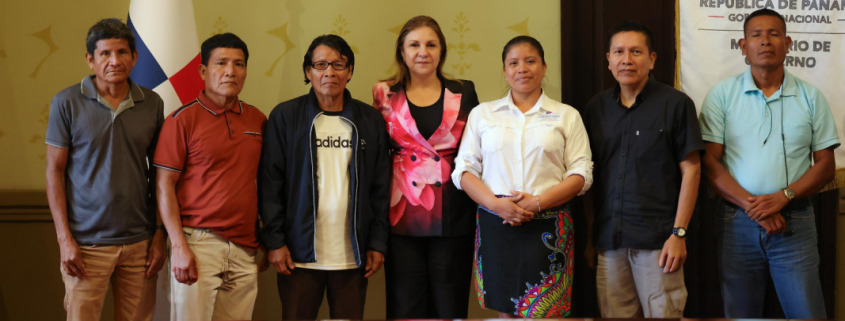 Panamá, 6 de junio de 2025.- La ministra de Gobierno, Dinoska Montalvo, recibió en el Salón de Los Medallones a la gobernadora Emberá Wounaan, Raquela Carpio junto a las autoridades tradicionales y dirigentes regionales de la comarca, con quienes conversó sobre la situación que vive el país y los hermanos indígenas.