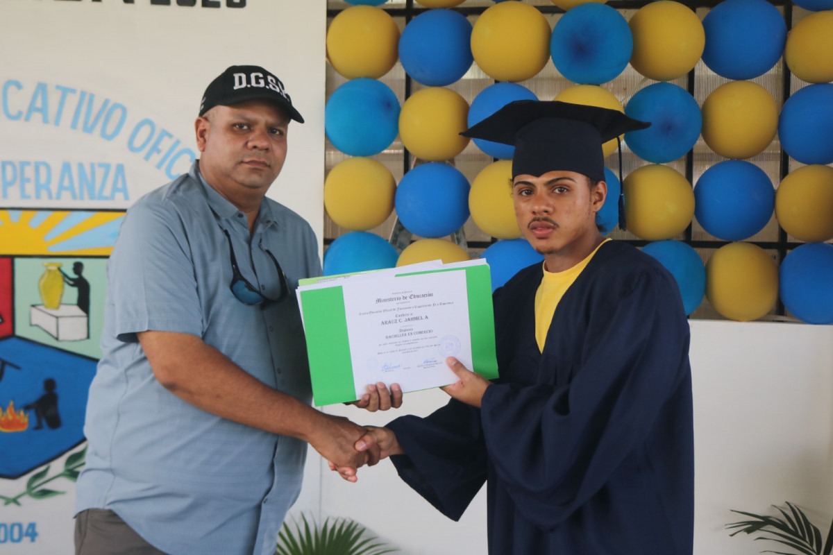 Alex, privado de libertad con mayor índice del Centro Educativo Fe y Esperanza, agradeció a sus familiares, personal del Meduca y del Sistema Penitenciario por permitirles este logro. “Estoy feliz conmigo mismo y mi familia, así como todos aquellos que tuvieron que ver con este triunfo y nunca nos olvidemos quienes somos y hacia donde queremos llegar promoción 2023”, recalcó el primer puesto.