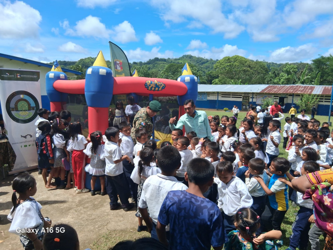 Ellos recibieron canastitas y diversas golosinas. Además , se les obsequiaron palomitas y se divirtieron en el juego de brinca brinca, ofrecido por el Servicio Nacional de Fronteras.