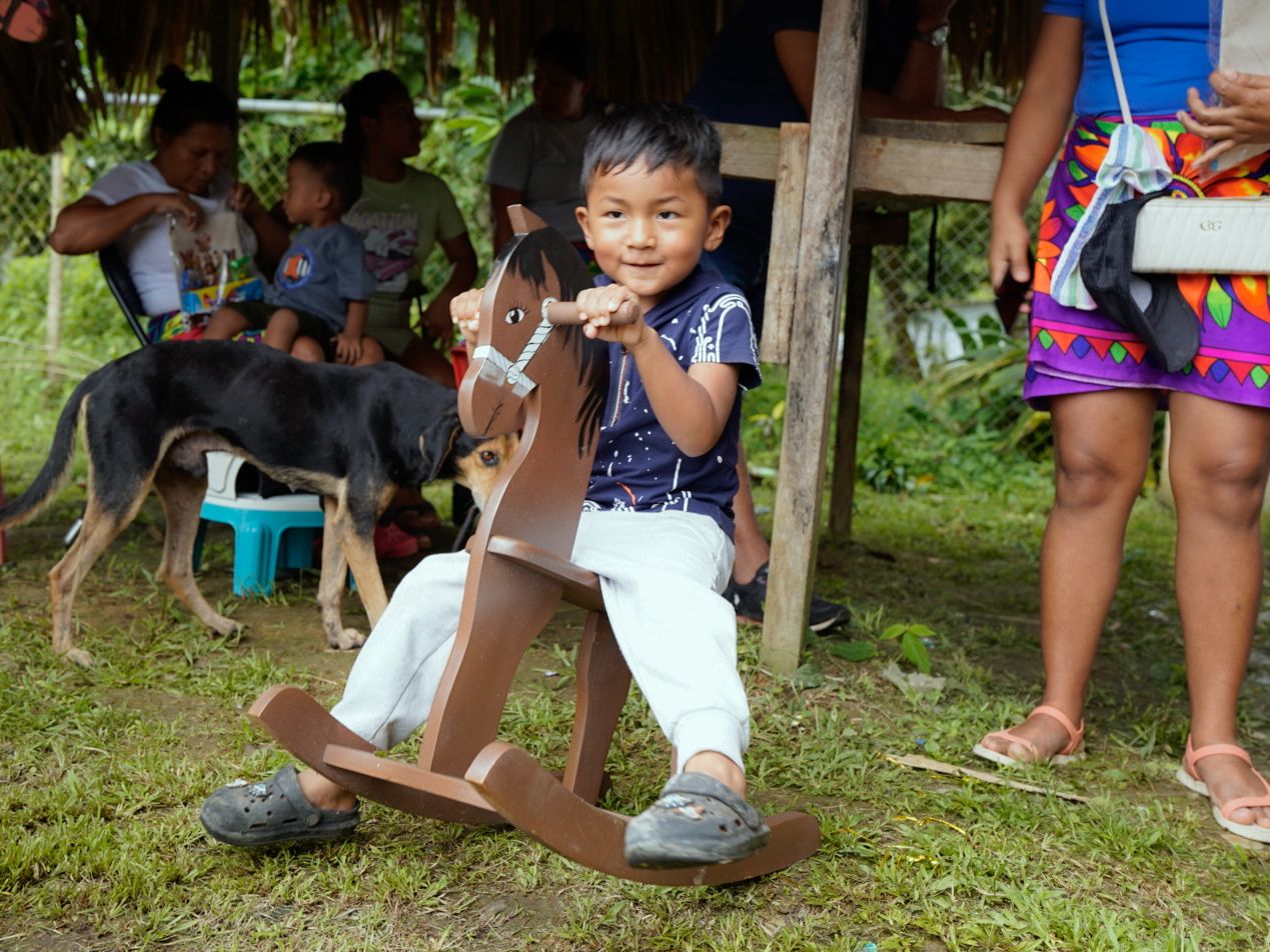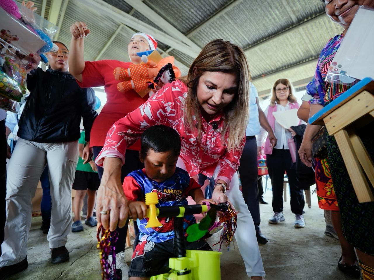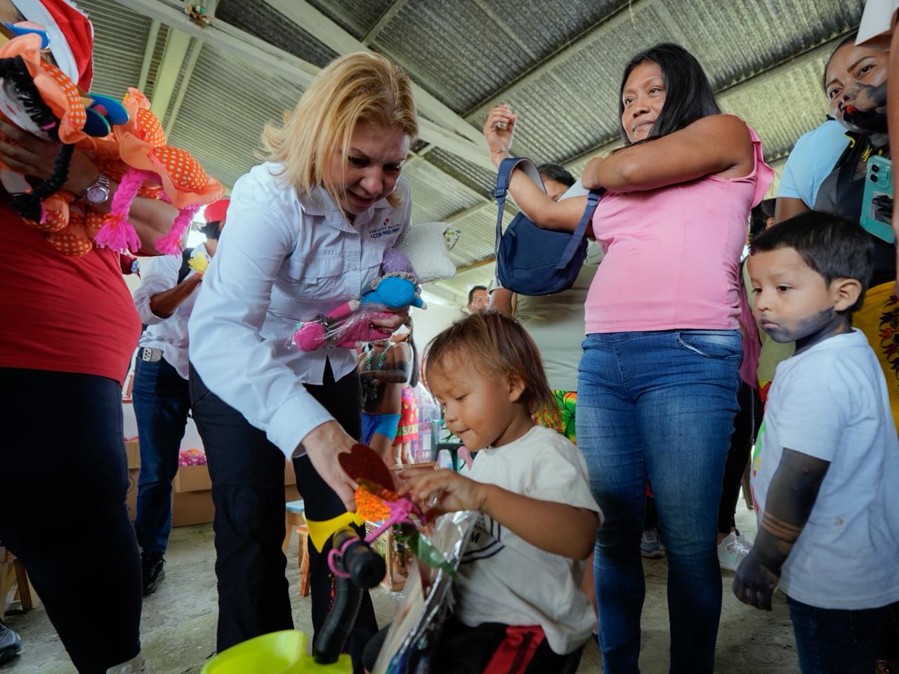 Piriatí Emberá, 17 de diciembre de 2025.- La entrega más linda, llegó a la comunidad de Piriatí Emberá, de manos de la ministra de Gobierno, Dinoska Montalvo y la Primera Dama, Maricel Cohen de Mulino, con muchos regalos y juguetes confeccionados por las personas privadas de libertad de los centros penitenciarios del país.