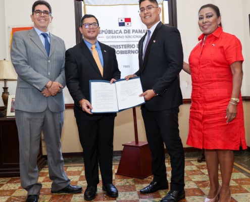 Panamá, 6 de diciembre de 2023. El ministro de Gobierno, Roger Tejada, acompañado por la ministra de la Mujer, Juana Herrera, firmó la Resolución que crea la Oficina de Estadística del Ministerio de Gobierno (Mingob), la cual permitirá formular las directrices de los procesos estadísticos en la recopilación, organización, análisis y publicación de la información que generan las dependencias de la entidad.