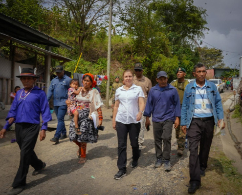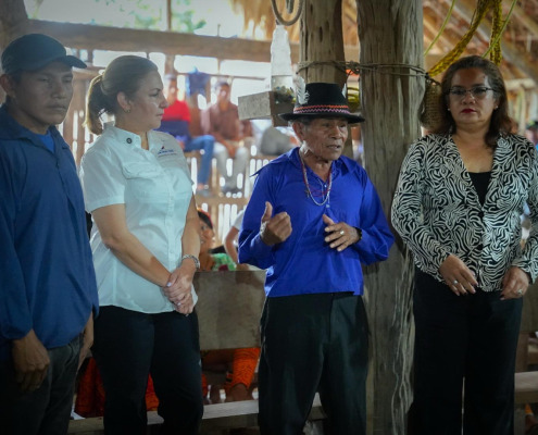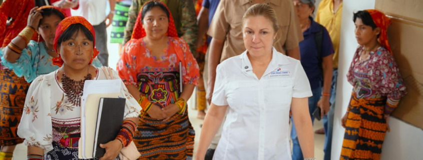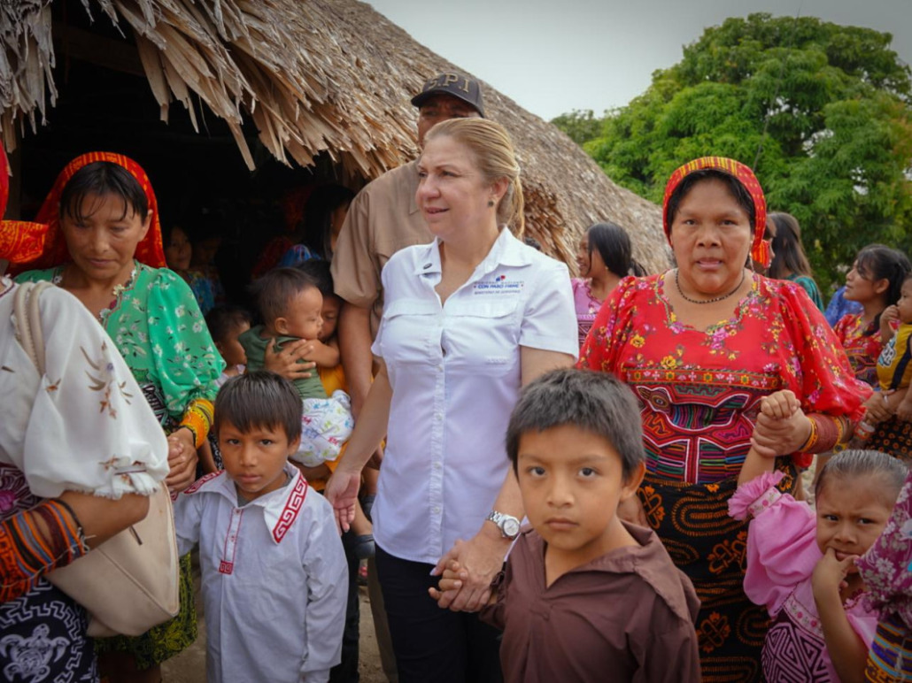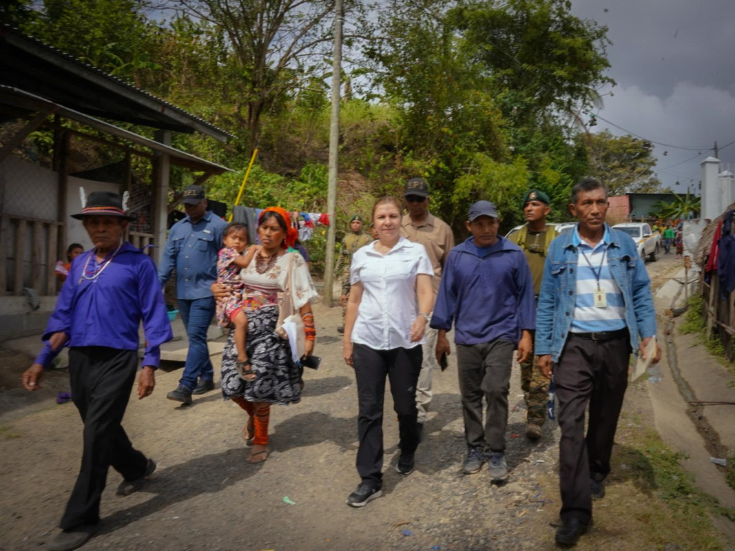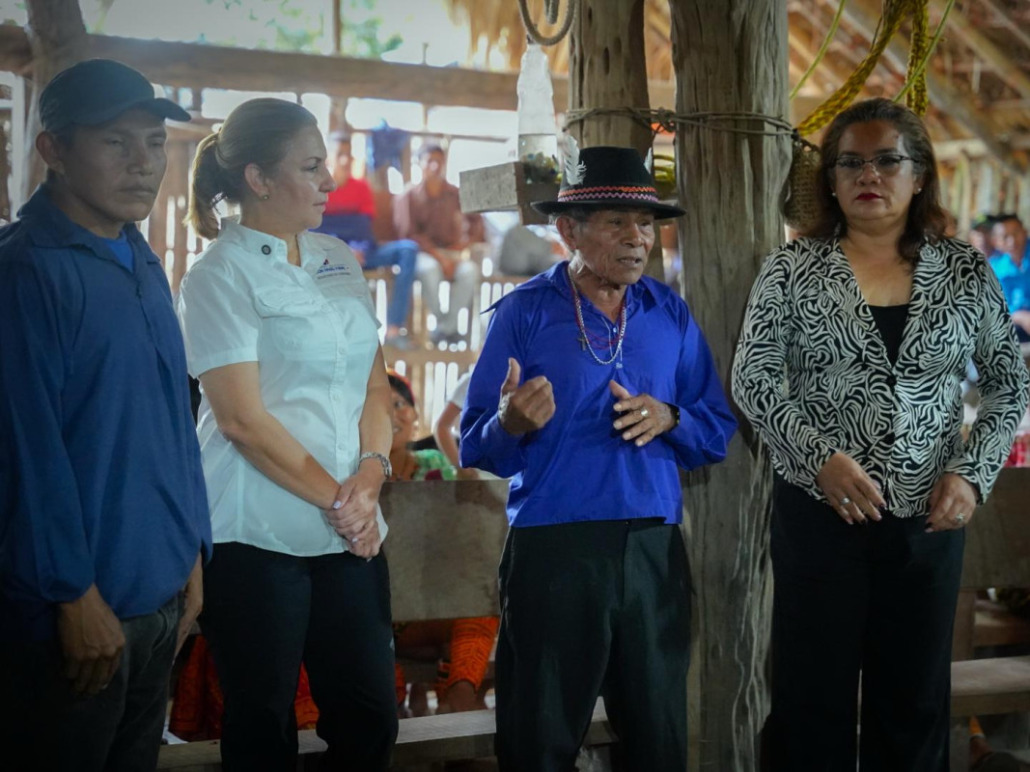 Panamá, 21 de febrero de 2025. Como parte de su recorrido por las comarcas y territorios indígenas del país, la ministra de Gobierno, Dinoska Montalvo estuvo este viernes en la comunidad de Akua Yala, en la comarca Kuna de Madugandí, para dar seguimiento a los proyectos en construcción que se ejecutan en el lugar y que forman parte del Plan de Desarrollo Integral de los Pueblos.