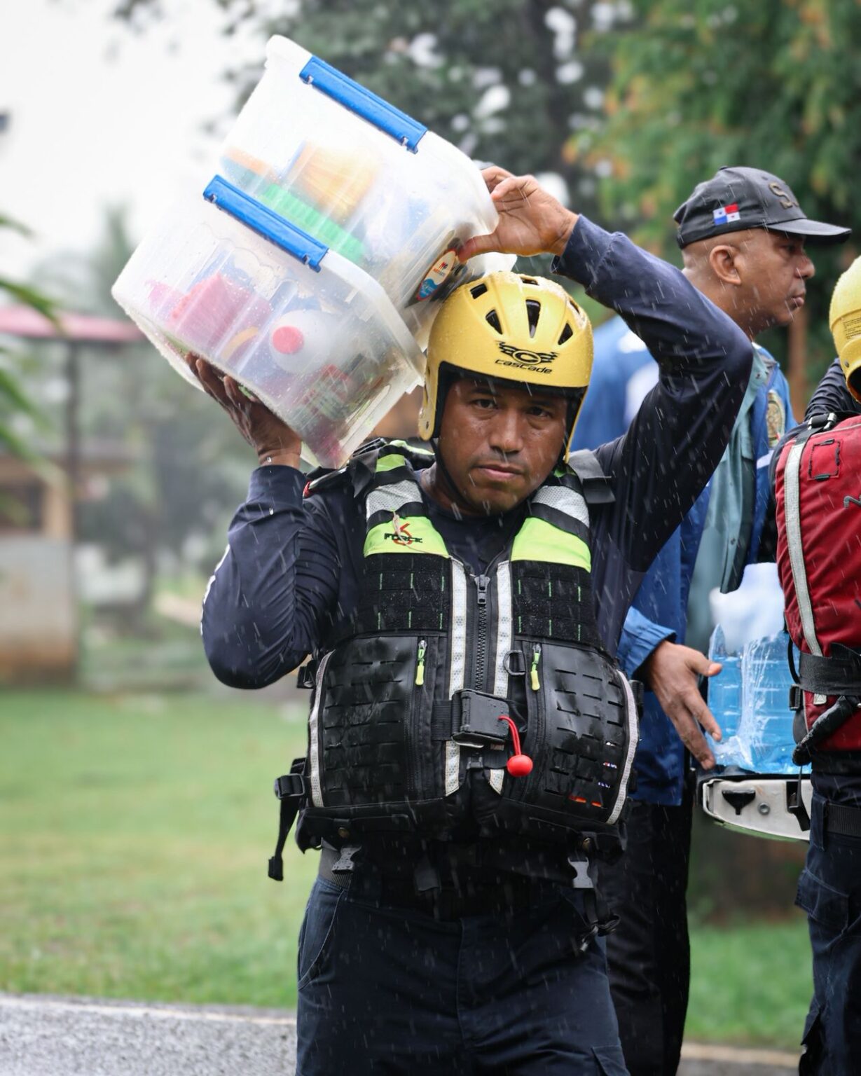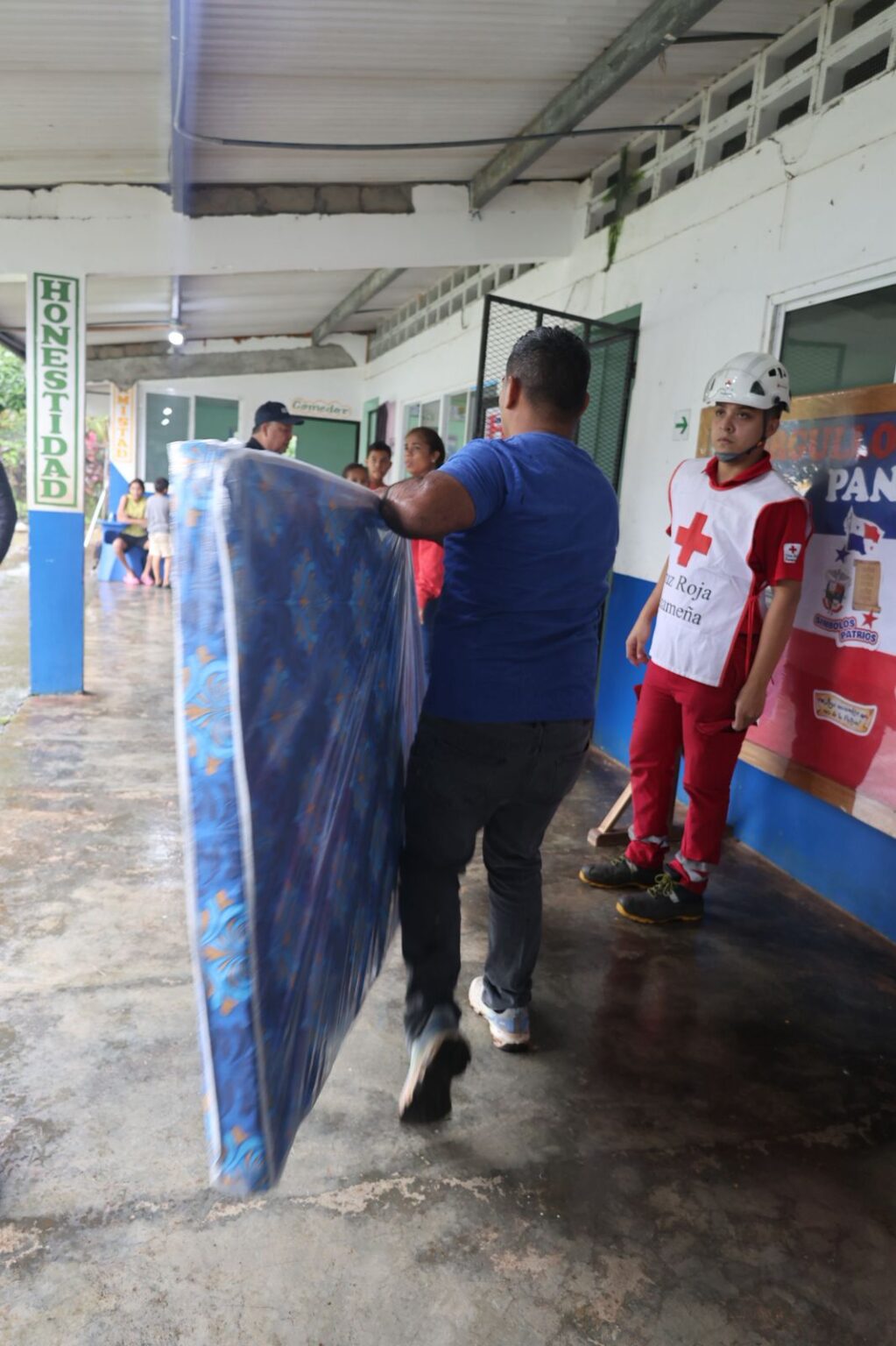 Durante esta jornada, se entregaron kits de limpieza, colchones y agua embotellada, insumos que fueron previamente recolectados en la bodega del Sistema Nacional de Protección Civil (Sinaproc) en Aguadulce, provincia de Coclé.