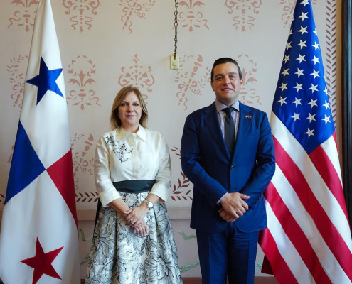 Panamá, 3 de junio de 2025.- Con el fin de tratar temas de interés entre ambas naciones, la ministra de Gobierno, Dinoska Montalvo, se reunió con el embajador de Estados Unidos en Panamá, Kevin Marino Cabrera, quien ofreció cooperación técnica en asuntos penitenciarios.