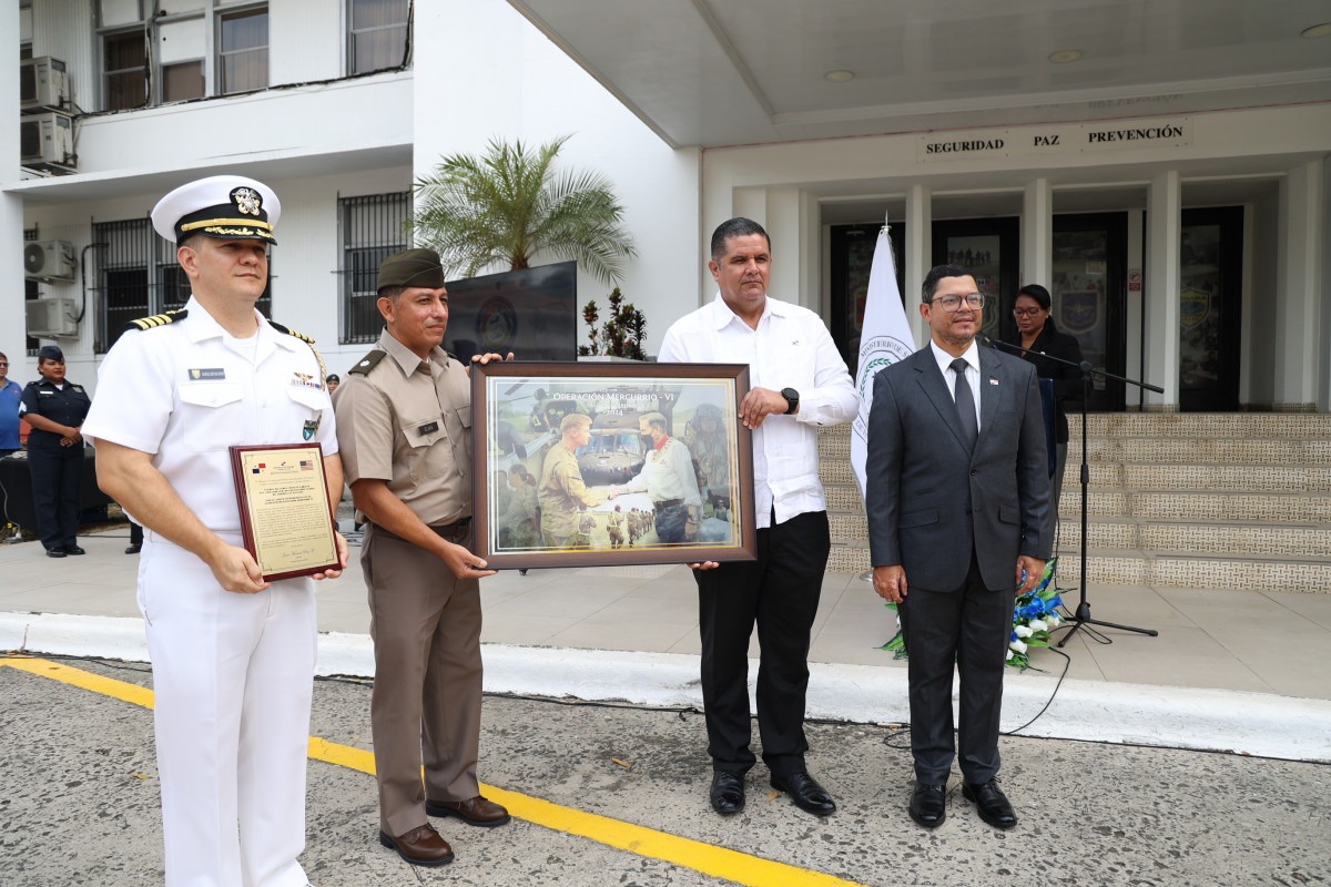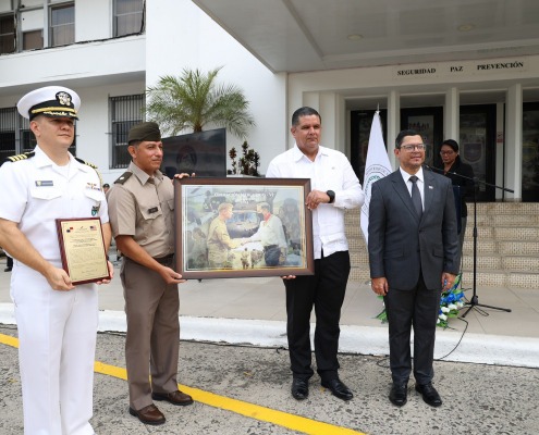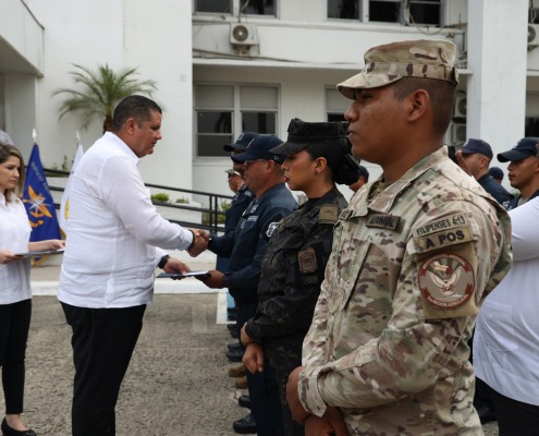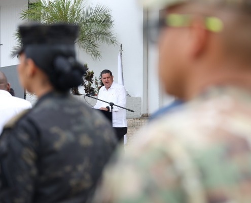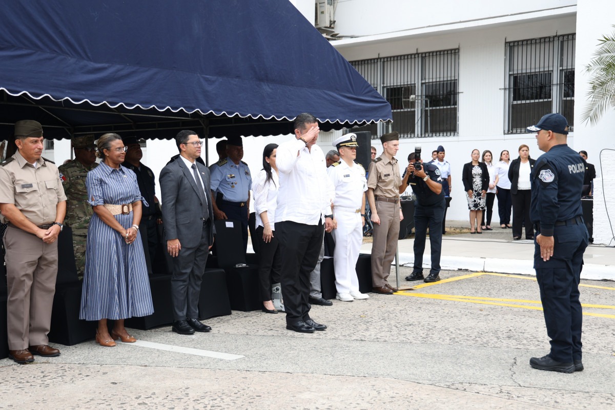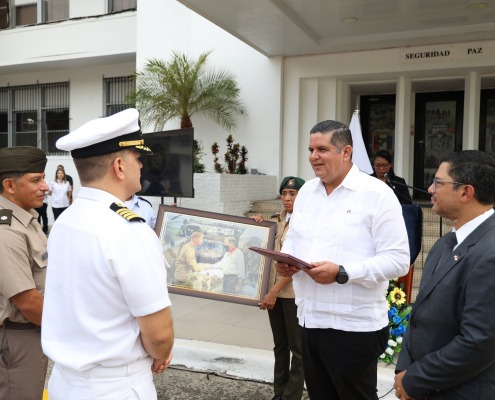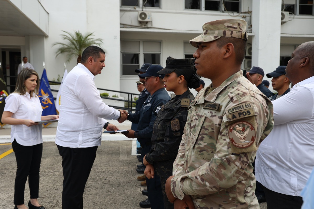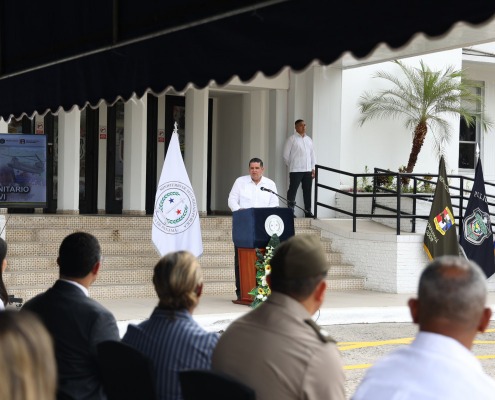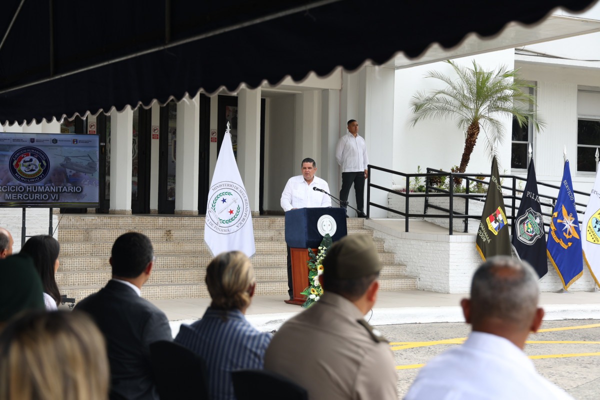 Panamá, 18 de marzo de 2024. El ministro de Gobierno, Roger Tejada Bryden, participó en el acto de reconocimiento a las unidades que estuvieron en el “Ejercicio Humanitario Mercurio VI”, que benefició a 23 comunidades de difícil acceso de la comarca Ngäbe Buglé, con el traslado de 470 mil 300 libras de materiales de construcción y estructuras modulares.