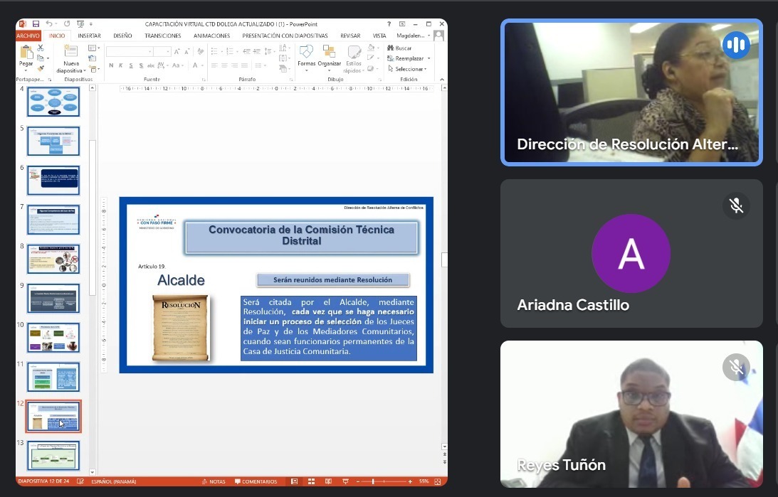 La Dirección de Resolución Alterna de Conflictos (DRAC), en su rol capacitador realiza una serie de talleres virtuales dirigidos a los miembros que conforman las Comisiones, para orientarlos sobre sus funciones dentro de la Justicia Comunitaria de Paz, de acuerdo a lo establecido en los artículos 26, 27 y 28 de la Ley 16.