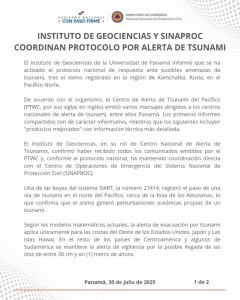 Ciudad de Panamá, 30 de julio de 2025.- El Instituto de Geociencias de la Universidad de Panamá informó que se...