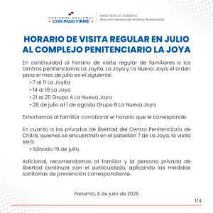 En continuidad al horario de visita regular de familiares a los centros penitenciarios La Joyita, La Joya y La Nueva...