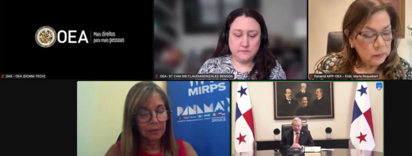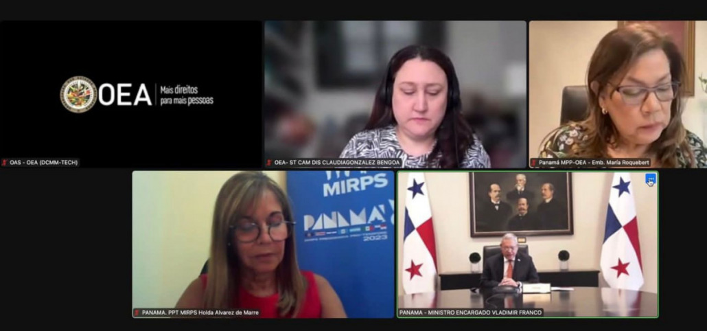 Panamá, 20 de mayo de 2023. En representación de la Presidencia Pro-Tempore del Marco Integral Regional para la Protección y Soluciones (MIRPS) que lidera el Ministerio de Gobierno (Mingob), la coordinadora del Plan Regional, Holda Álvarez, compartió ante la sesión Temática de la Comisión de Asuntos Migratorios de la Organización de los Estados Americanos (OEA), los retos y desafíos que enfrenta Panamá como país e integrante del MIRPS.