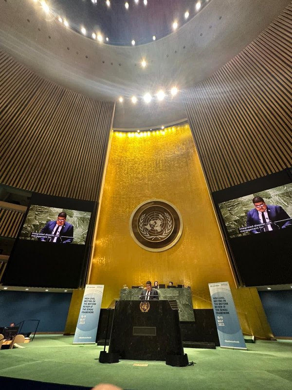 Nueva York- Estados Unidos, 20 de mayo de 2023. En representación de la República de Panamá, el subdirector del Sistema Nacional de Protección Civil, Adherbal De La Rosa, participó de la Sesión Plenaria de la Revisión de mitad de período de la aplicación del Marco de SENDAI para la Reducción del Riesgo de Desastres 2015-2030, que se realiza en la sede de las Naciones Unidas, ubicada Nueva York, Estados Unidos.