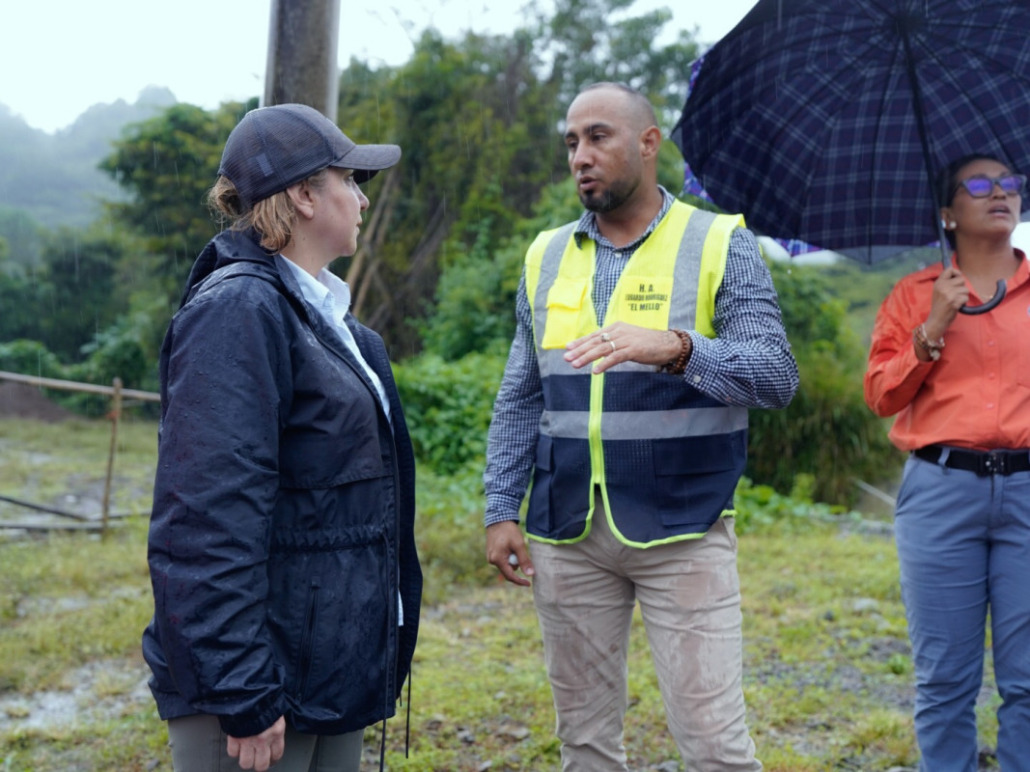 La ministra Dinoska Montalvo junto a la coordinadora de enlace del Gabinete de Gestión Integral de Riesgos de Desastres del Mingob, Blanca Gómez, llevaron el mensaje del Gobierno Nacional de redoblar esfuerzos para garantizar una gestión eficiente del riesgo y la protección efectiva de nuestras comunidades.