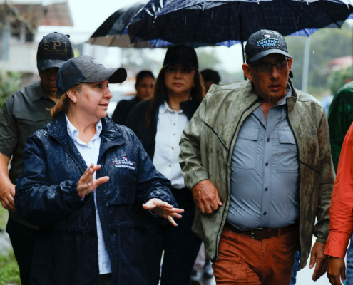 Posteriormente, bajo un fuerte aguacero, el equipo del Ministerio de Gobierno, encabezado por la ministra Dinoska Montalvo junto a representantes del Ministerio de Obras Pública (MOP), Ministerio de Vivienda y Ordenamiento Territorial (Miviot), Benemérito Cuerpo de Bomberos (BCBRP), Sistema Nacional de Protección Civil (Sinaproc), Alcaldía de Boquete y la Gobernación de Chiriquí, se trasladaron al distrito de Boquete para inspeccionar las áreas afectadas por las fuertes lluvias y tomar decisiones en campo para dar respuesta rápida a las emergencias y proteger a las familias afectadas. Entre los puntos críticos estaban Quebrada Zumbona, Quebrada Grande y Río Caldera. Igualmente, se reiteró a la población que la prevención salva vidas.