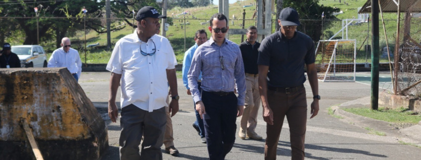 Colón, 1 de febrero de 2023. Con el objetivo de mejorar las condiciones laborales tanto del personal de custodia de la Dirección General del Sistema Penitenciario (DGSP) como de la Policía Nacional; el director General del Sistema Penitenciario, Euclides Joel Castillo G., acompañado por el director de la Sección de Asuntos Antinarcóticos y Aplicación de la Ley (INL) de la Embajada de los Estados Unidos de América en Panamá, Ory Abramowicz, realizaron una visita de campo al Complejo Penitenciario Nueva Esperanza, provincia de Colón.