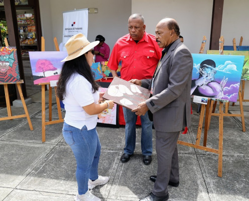 Panamá, 9 de febrero de 2023. – Demostrando el éxito de los programas de resocialización apoyados por el ministro de Gobierno, Roger Tejada, el Instituto de Estudios Interdisciplinarios (IEI) lideró el pabellón de arte del festival Panamá Ciudad Creativa Gastronómica organizado por la Alcaldía de Panamá, con la exposición de la galería “Pinceladas de Esperanza”, presentando pinturas diseñadas por jóvenes de los centros de custodia y cumplimiento Residencia Femenina (CCCRF) y Las Garzas (CCLG).