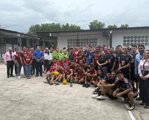 Herrera, 1 de agosto de 2025. – Con la participación de ocho equipos inició la liga fútbol «Nelson Mandela» en el Centro Penitenciario de Herrera, torneo que tiene como objetivo ayudar que las personas privadas de libertad se reintegren a la sociedad a través de la promoción de valores, el fortalecimiento de la salud física y mental, y el desarrollo de habilidades sociales.