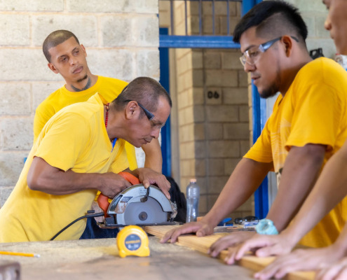 Los reclusos reciben capacitación durante dos meses, donde aprenden habilidades esenciales como medición, corte básico, lijado y barnizado. Tras esta formación básica, avanzarán al siguiente nivel del taller, que les permitirá elaborar muebles, estanterías y otros artículos de madera.