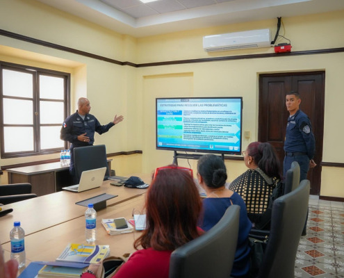 Panamá, 8 de febrero de 2025. Una propuesta elaborada por un grupo de oficiales panameños graduados de la escuela penitenciaria de Argentina «Dr. Juan José O’Connor» que busca crear el Servicio Nacional Penitenciario Panameño fue presentado a la ministra de Gobierno, Dinoska Montalvo y su equipo de trabajo por el comisionado Luis García, coordinador del Sistema Penitenciario del Ministerio de Seguridad (Minseg).