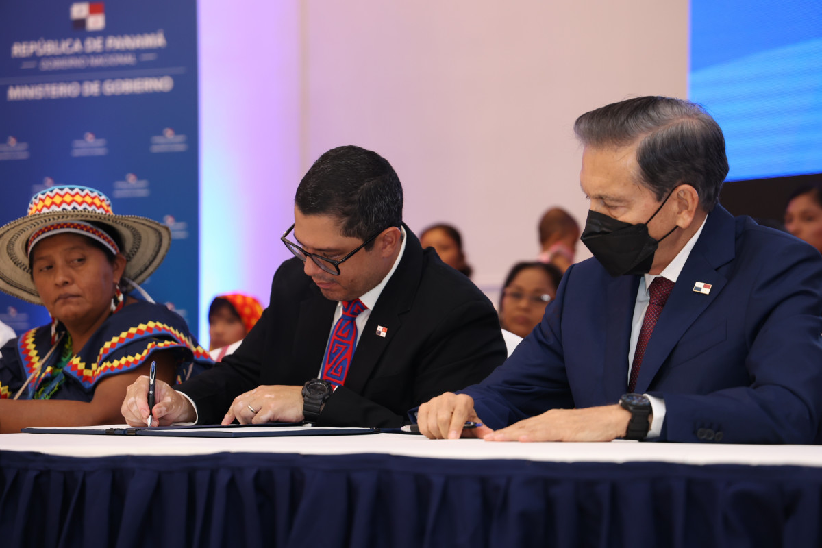 La firma se da en presencia de lideresas, gobernadores y autoridades comarcales como testigos principales y de representantes de organizaciones internacionales.