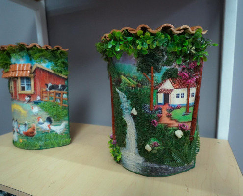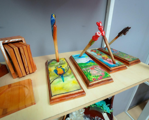 Este stand encuentra artesanías y artículos como tejas pintadas, balcones, artículos de oficina, adornos, ropa típica, entre otras piezas, confeccionadas por personas privadas de libertad de los distintos centros penitenciarios del país.