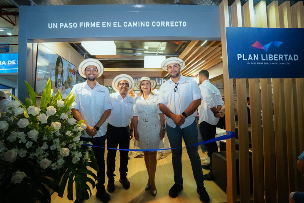 Los Santos, 24 de abril de 2025.- El presidente de la República, José Raúl Mulino, acompañado por la Primera Dama, Maricel Cohen de Mulino y la ministra de Gobierno, Dinoska Montalvo, inauguró el stand Plan Libertad en la Feria Internacional de Azuero en su versión N°61, confirmando una vez más el compromiso continuo por mejorar los procesos de resocialización y reinserción laboral de las personas privadas de libertad.