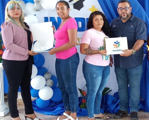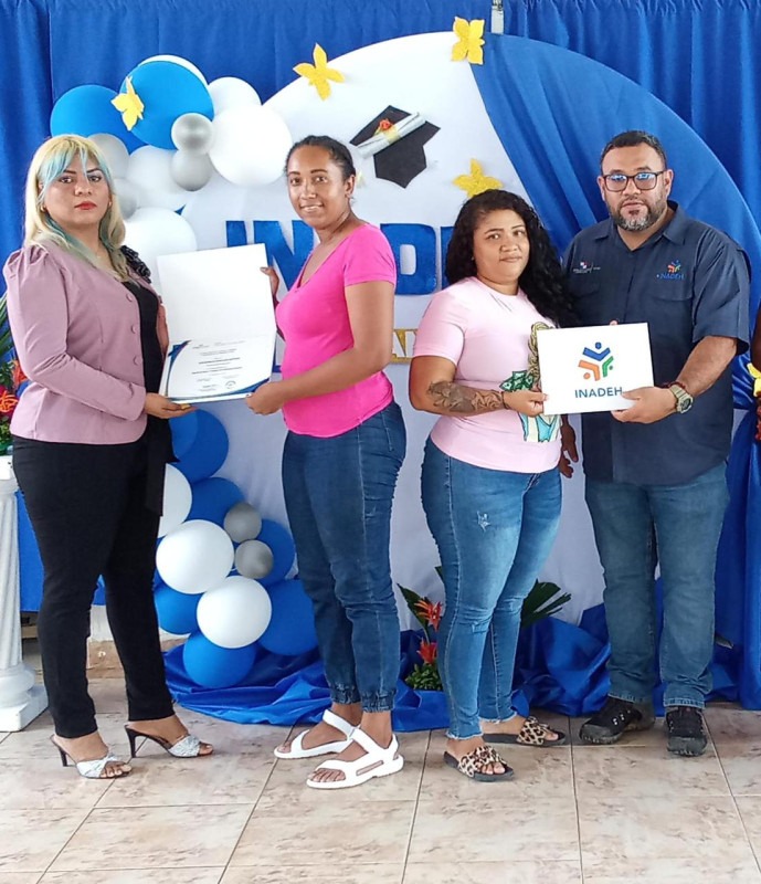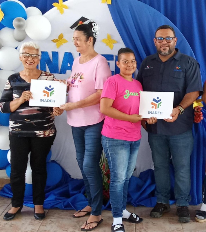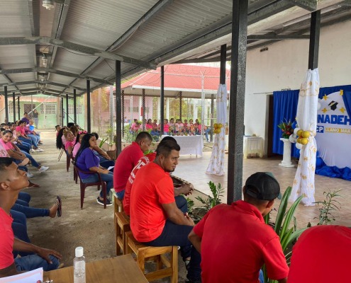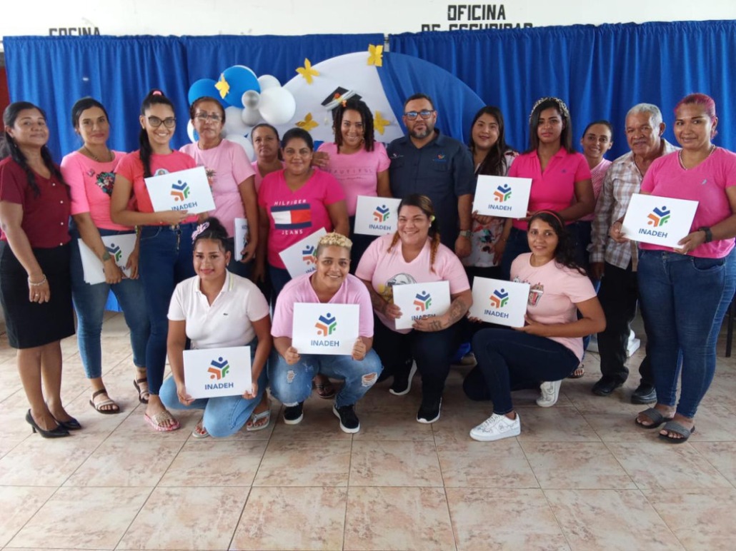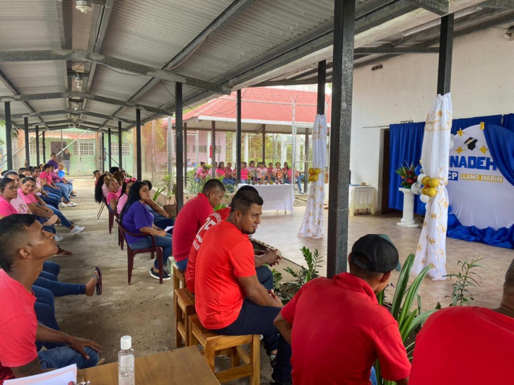 Coclé, 22 de mayo de 2024. – Un grupo de 70 privadas y nueve privados del centro penitenciario de Llano Marín recibió certificado de culminación en diversos cursos en inglés, dulces nacionales, albañilería mosaico y azulejos, cultivo de granos básicos, diseño de cejas y pestañas postizas y confección de muebles de estilo, a cargo del equipo de instructores del Instituto Nacional de Formación Profesional y Capacitación para el Desarrollo Humano (Inadeh).