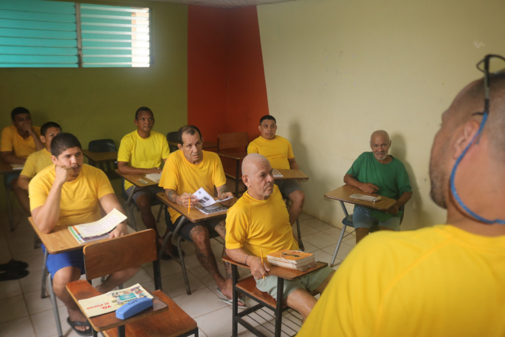 El sonido de las vocales y consonantes, conjugación de sílabas para formar palabras, trazos de superación plasmados en cuadernos, lectura, entre otras actividades, son el diario bregar en los salones de clases del Centro Penitenciario.