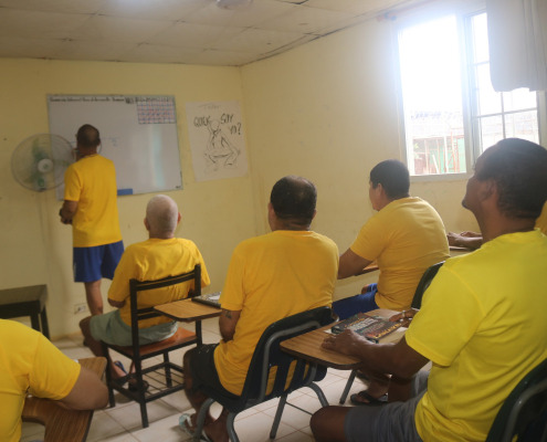 La otra cara de la historia nos las cuenta el privado de libertad Landy Sanjur, instructor capacitado por el Mides. Explicó que se trabaja en tres niveles de alfabetización: puro con nulo conocimiento, el medio y avanzado, labor que hace con otros dos compañeros. “A los puros, le enseñamos desde abajo con las vocales, a los que saben leer un poco, realizamos círculo de lectura y mejoran su lectura”, informó.