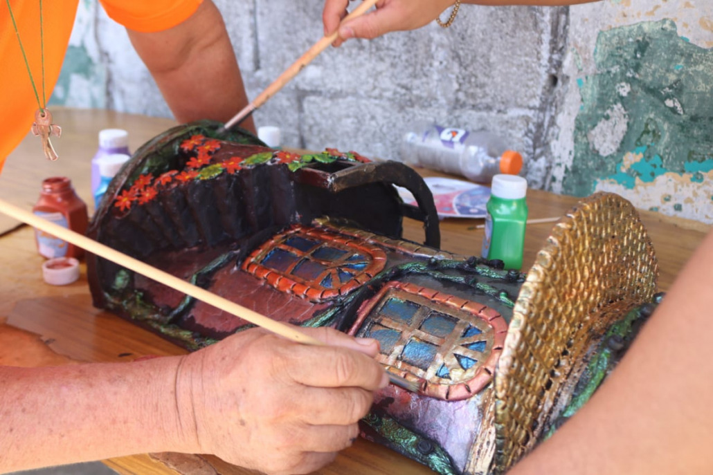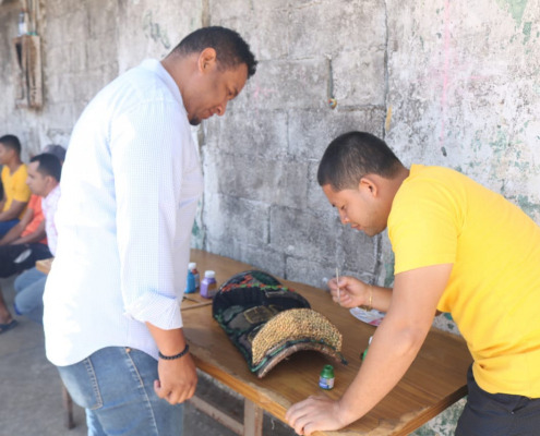 Los Santos, 31 de marzo de 2023. Un grupo de privados de libertad del centro penitenciario de Las Tablas participa de los diferentes talleres de pintura, mundillo, confección de camisolas trabajos en madera que ofrece el Instituto Nacional de Formación Profesional y Capacitación para el Desarrollo Humano (Inadeh), actividad educativa que coordina la Dirección General del Sistema Penitenciario panameño, como parte de los programas de resocialización que desarrolla el Ministerio de Gobierno (Mingob) en beneficio de las personas privadas de libertad.