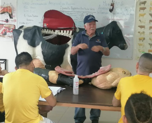 Chiriquí, 4 de octubre de 2024. – Un total de 25 privados de libertad del centro penitenciario de Chiriquí, participan del curso inseminación artificial en bovinos. Este proyecto, dictado por expertos del Instituto Nacional de Formación Profesional y Capacitación para el Desarrollo Humano (Inadeh), tiene como objetivo dotar a los participantes de habilidades útiles que les permitan reintegrarse a la sociedad con oportunidades laborales.