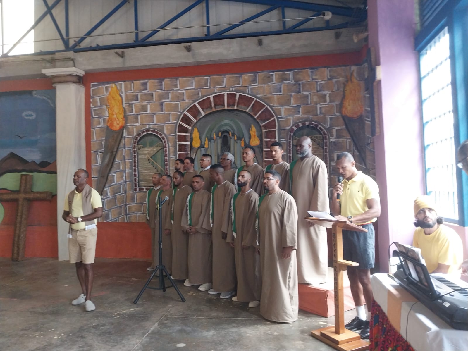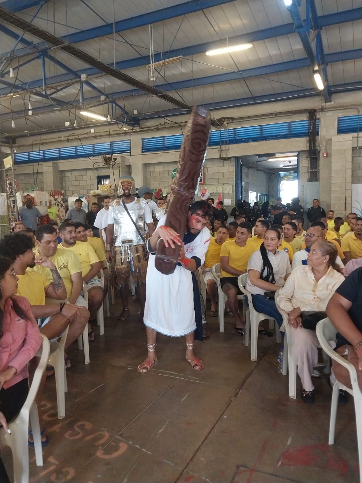 Los privados de libertad participaron activamente como actores, en la elaboración de la escenografía, vestuario y el coro, exponiendo sus habilidades artísticas, trabajo en equipo y compromiso, durante mes y medio de preparación para exponer una obra de calidad y significado espiritual.