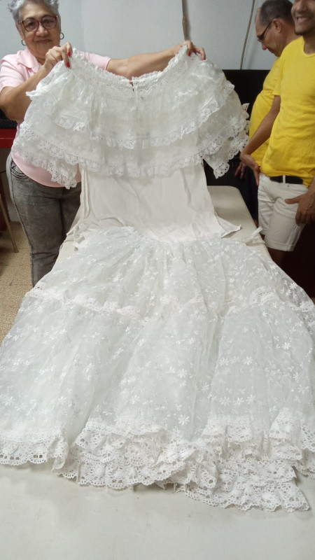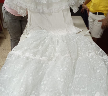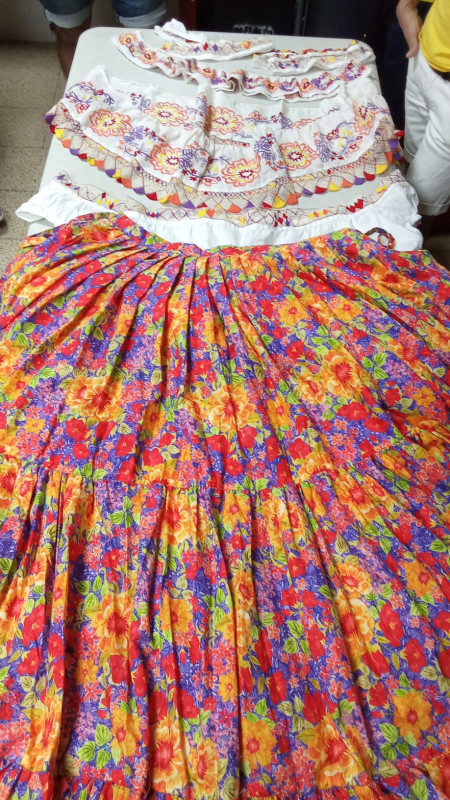 Zuleika Ramos, directora encargada del centro manifestó que se trata de la Pollera Blanca de Organza, Pollera Regional de Gala (coquito) y Pollera Montuna Santeña, confeccionada a mano por 20 privados de libertad.