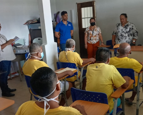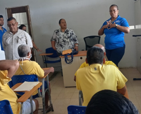 Veraguas, 20 de agosto de 2025. –Un grupo de privados de libertad del Centro Penitenciario de Santiago participan en el programa de alfabetización “Yo sí puedo”, impulsado por la Dirección General del Sistema Penitenciario (DGSP) en coordinación con el Ministerio de Desarrollo Social (Mides).