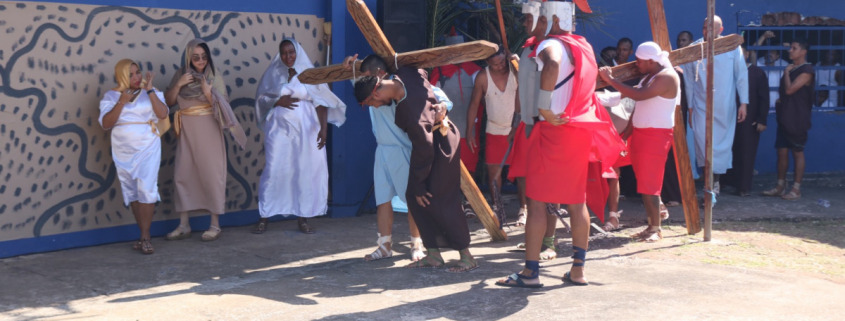 En los centros penitenciarios Las Tablas y Penonomé, también se realizó una dramatización de Pasión de Cristo, un momento de reflexión desde prisión en la fe cristiana, para recordar que Jesús padeció por el perdón de los pecados de toda la humanidad.