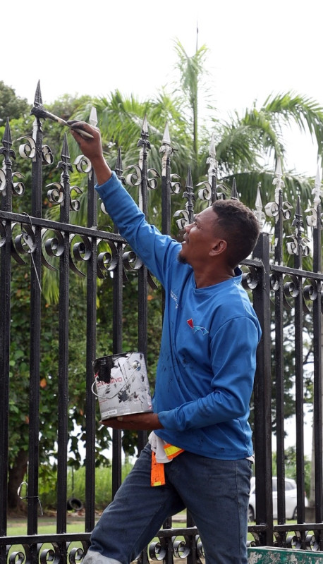 Panamá, 2 de septiembre de 2025.- Con esmero y dedicación, privados de libertad del Centro Penitenciario de Tinajitas, se encuentran trabajando en la colocación de pinturas en las cercas de hierros y pilastras de concreto que están en las instalaciones del Centro de Convenciones en Amador, antiguo Figali Convention Center, lugar que se ha destinado para los ‘Premios Juventud 2025’.