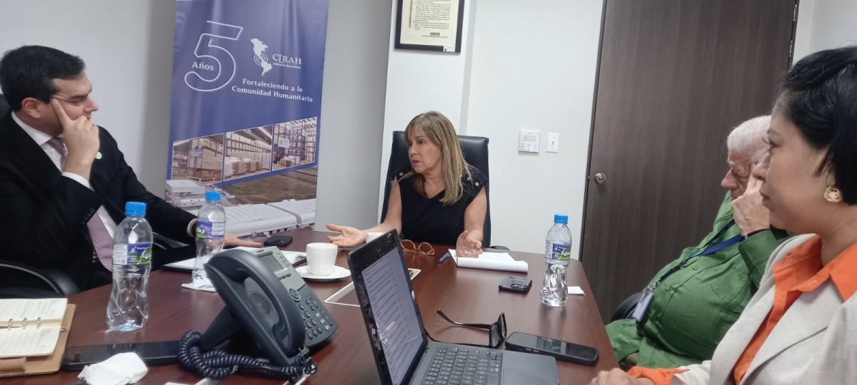 Panamá, 24 de octubre de 2024. Una presentación sobre las proyecciones futuras del Centro Logístico Regional de Asistencia Humanitaria (CLRAH), realizó la directora de la entidad, Holda Álvarez de Marré, al nuevo administrador de la Agencia Panamá Pacífico (APP), Javier Suárez Pinzón, quien junto a su equipo de trabajo visitó las instalaciones del Hub Humanitario.