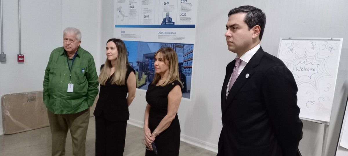Durante el recorrido por las instalaciones del Depósito de Respuesta de las Naciones Unidas (UNHRD), Francisco Quesada, gerente de la bodega, explicó las operaciones, funcionamiento y la labor como centro de coordinación y distribución de ayuda en situaciones de crisis humanitaria en la región.