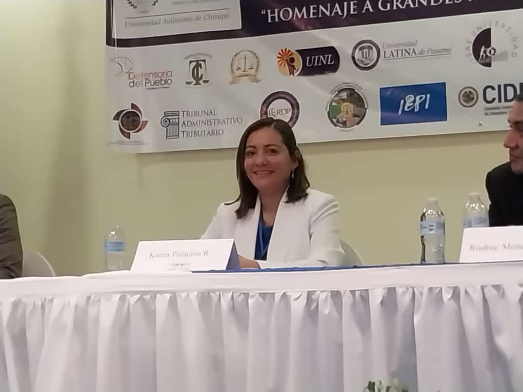 Panamá, 18 de mayo de 2023. La directora de la Dirección de Resolución Alterna de Conflictos (DRAC), Karen Palacios, participó del III Foro Jurídico Nacional, organizado por la Universidad Tecnológica OTEIMA, la Universidad Autónoma de Chiriquí y otras instituciones académicas donde abordó los avances en el desarrollo de los Mecanismos Alternativos de Solución de Conflictos en Panamá.