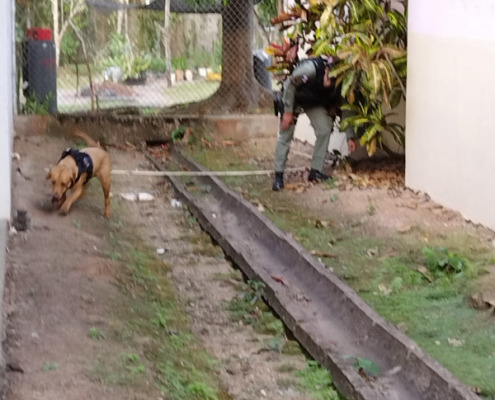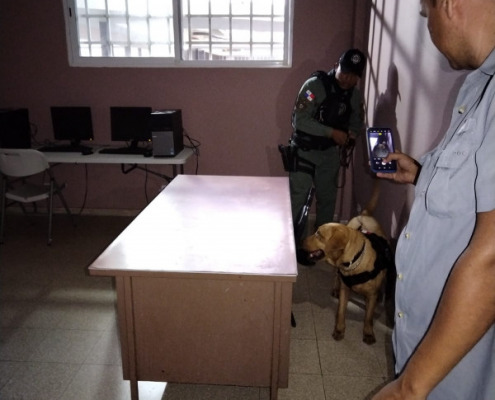 La inspección con el apoyo de los canes entrenados para la detección de material ilegal se llevó a cabo por todas las instalaciones internas y patios del centro culminando de manera exitosa, corroborando el buen estado de seguridad en que se encuentra el CCCRF.