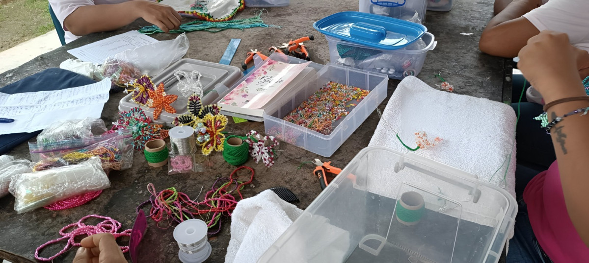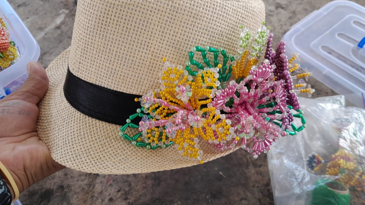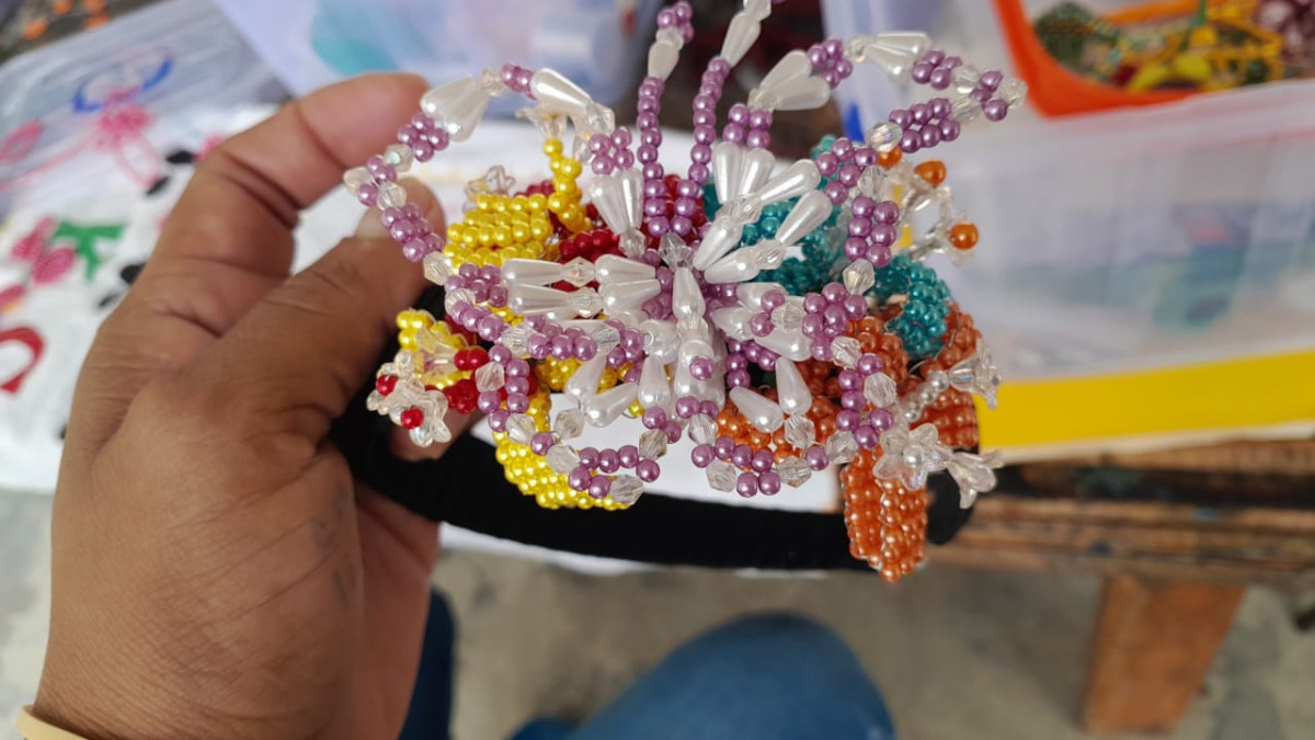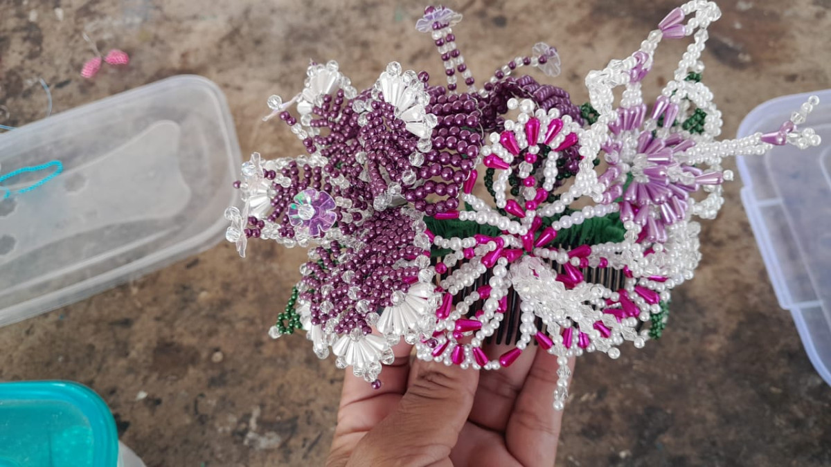 El tembleque, uno de los adornos más emblemáticos del tocado de la empollerada, requiere destreza y atención al detalle. Con esta formación, las participantes adquieren habilidades artesanales que les proporcionan herramientas para una reinserción social y laboral más efectiva.