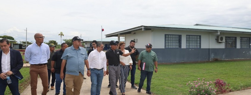 Coclé, 5 de octubre de 2023. – Una visita de inspección por la Academia de Formación Penitenciaria (AFP) Andrés Gutiérrez Bonilla, ubicada en corregimiento El Roble, distrito de Aguadulce, realizó el ministro de Gobierno, Roger Tejada Bryden, junto al director General del Sistema Penitenciario (DGSP), Euclides Joel Castillo G. y la Oficina Internacional de Asistencia Antinarcóticos y Cumplimiento de la Ley (INL, por sus siglas en ingles) de la Embajada de Estados Unidos, con el fin de redoblar esfuerzos para mejorar y modernizar las instalaciones de este centro de formación.