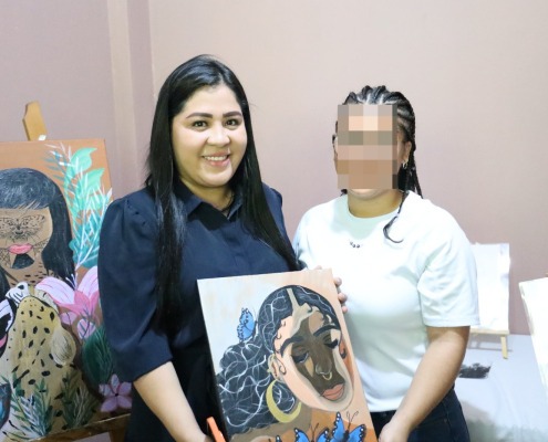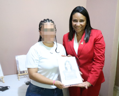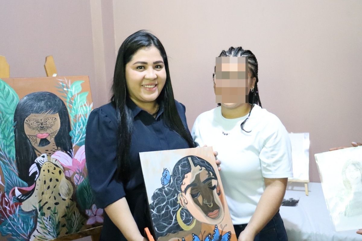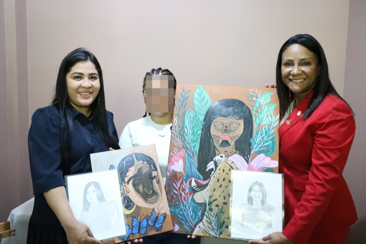 La ministra Palacio interactuó con las jóvenes, además de escuchar sus vivencias y compartirles mensajes de exhortación; mientras que estas les mostraron las diferentes manualidades que realizan en los cursos que son impartidos en el lugar e hicieron entrega de cuadros pintados por ellas, tanto a la Ministra como a la directora del IEI.