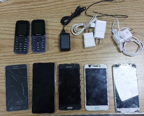 Chiriquí, 6 de febrero de 2024. – Un par de envoltorios con presunta sustancia ilícita, siete celulares y tres cargadores fueron decomisados en el Centro de Custodia y Cumplimiento Aurelio Granados Hijo (CCCAGH) de la provincia de Chiriquí, mediante requisa de seguimiento realizada por los custodios del Instituto de Estudios Interdisciplinarios (IEI).