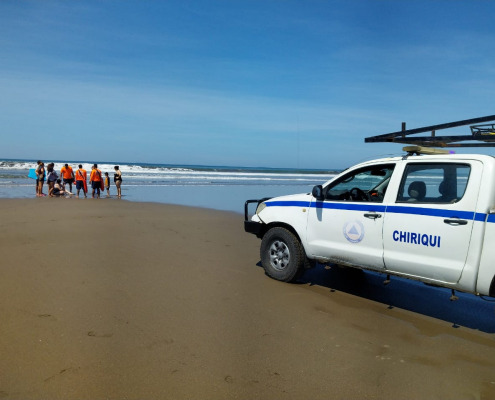 En horas del mediodía de este domingo, voluntarios y funcionarios del Sistema Nacional de Protección Civil, auxiliaron a una menor de 13 años de nacionalidad suiza, que estaba siendo golpeada por las fuertes olas de la Playa de Las Lajas en el distrito de San Félix en Chiriquí.