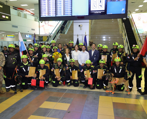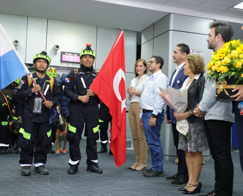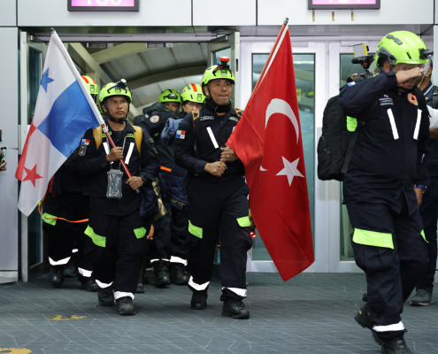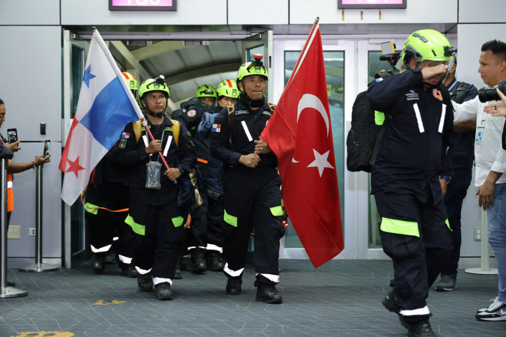 Panamá, 24 de febrero de 2023. El grupo de 20 rescatistas panameños de la Fuerza de Tarea Conjunta (FCT) que apoyó en labores de búsqueda de sobrevivientes luego del terremoto en Turquía, llegó este viernes a la ciudad de Panamá, luego de trabajar provincia de CahRamanMaras, ubicada al sureste y una de las más afectadas por el terremoto del pasado 6 de febrero en Turquía. Posteriormente, estuvieron en la provincia de Hatay, para continuar las labores de rescate. El gobierno de Turquía y la población despidieron con honores a los rescatistas entregándoles flores como muestra de agradecimiento.