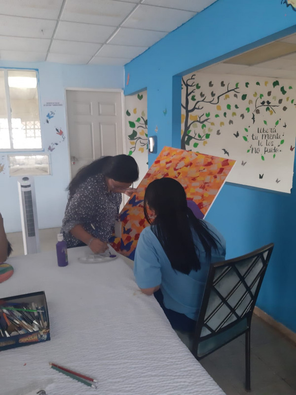 “Siempre me gustó dibujar y pintar, al estar dentro del centro se me ha dado la oportunidad con este taller de potenciar mis habilidades creativas por lo que he logrado plasmar detalles de mis vivencias personales en las pinturas que elaboro, esto me ha servido como medio para la sanación interior”, manifestó una de las jóvenes pintoras del CCCRF.