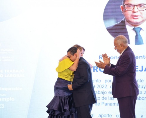 El Ministro de Gobierno recibió de manos de Doris Zapata, ministra de Trabajo y Desarrollo Laboral, el reconocimiento que destaca que por su labor se constituye en un legado imperecedero y ejemplo de trabajo de equipo en la atención de salud, seguridad y el cumplimiento de las normas laborales en los centros de trabajo de la República de Panamá. “Su especial aporte consolida y robustece la misión de este ministerio” señala el homenaje a Tejada.